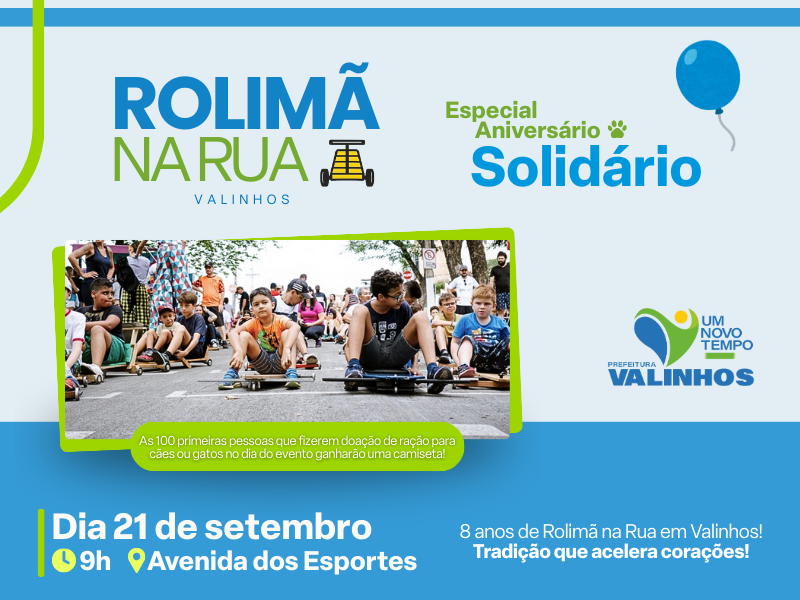 Além das descidas cheias de emoção para todas as idades (cada participante pode levar seu próprio carrinho), esta edição tem um convite especial à solidariedade: quem levar ração para cães e gatos ajuda animais em situação de vulnerabilidade em Valinhos. As primeiras 100 pessoas que fizerem doação no local ainda ganham uma camiseta exclusiva.