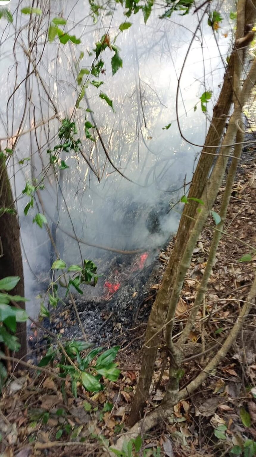 Equipes do Corpo de Bombeiros e da Defesa Civil chegaram ao local após cerca de uma hora de caminhada em mata fechada. Segundo informações atualizadas às 17h15, o fogo está concentrado na vegetação rasteira, formada por folhas secas, e não atingiu árvores altas. O uso do helicóptero Águia foi descartado devido ao horário avançado.