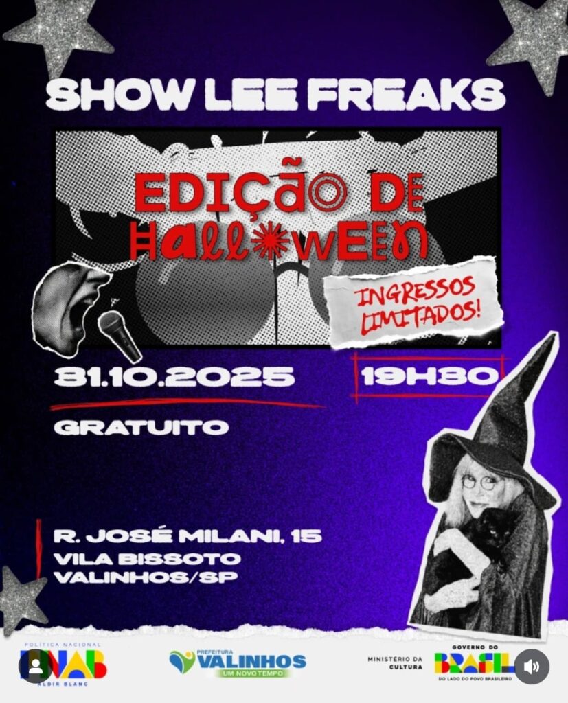 No Dia das Bruxas, quando os véus entre os mundos se afinam, o rock invade Valinhos: o grupo Lee Freaks apresenta um espetáculo que celebra a irreverência, a liberdade e o legado atemporal de Rita Lee, uma das maiores vozes do rock brasileiro. O show integra o projeto Lee Freaks – Tributo a Rita Lee, realizado com recursos da Política Nacional Aldir Blanc (PNAB), e promete uma noite de energia, humor e nostalgia.