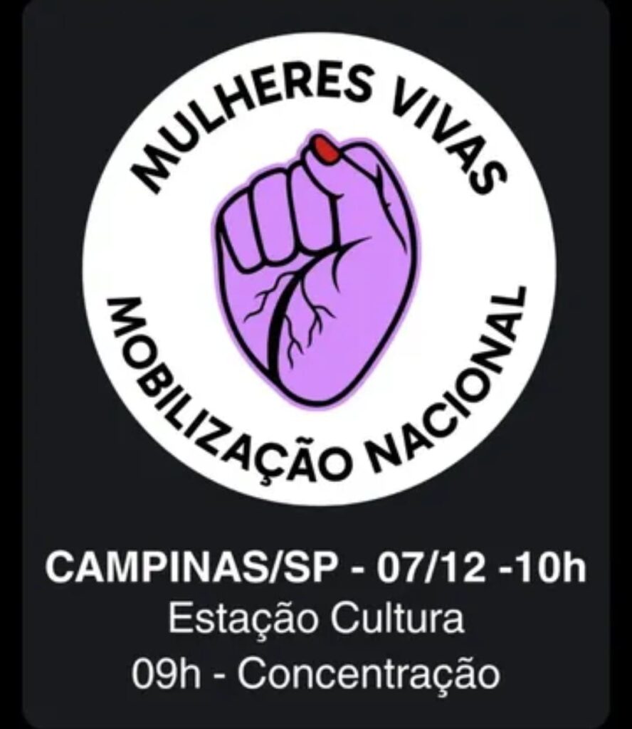 Diante desse cenário, milhares de mulheres e organizações populares estão convocando um levante nacional neste domingo, 07 de dezembro. Em Campinas, a concentração começa às 9h, na Estação Cultura, com caminhada até a Praça da Catedral.
