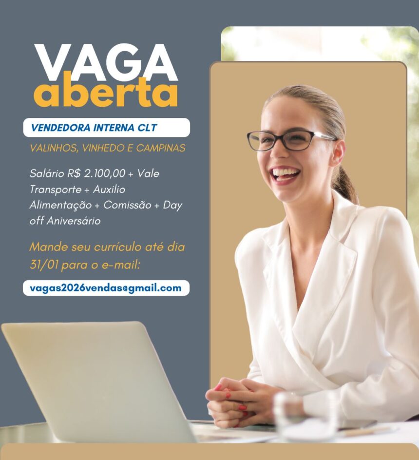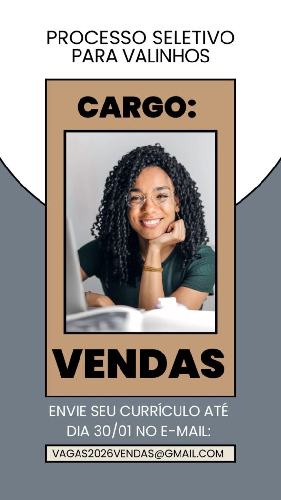 Os interessados deverão encaminhar o currículo aos cuidados de Isabella para o e-mail vagas2026vendas@gmail.com com a sigla VI no campo assunto até o dia 31/01/2026