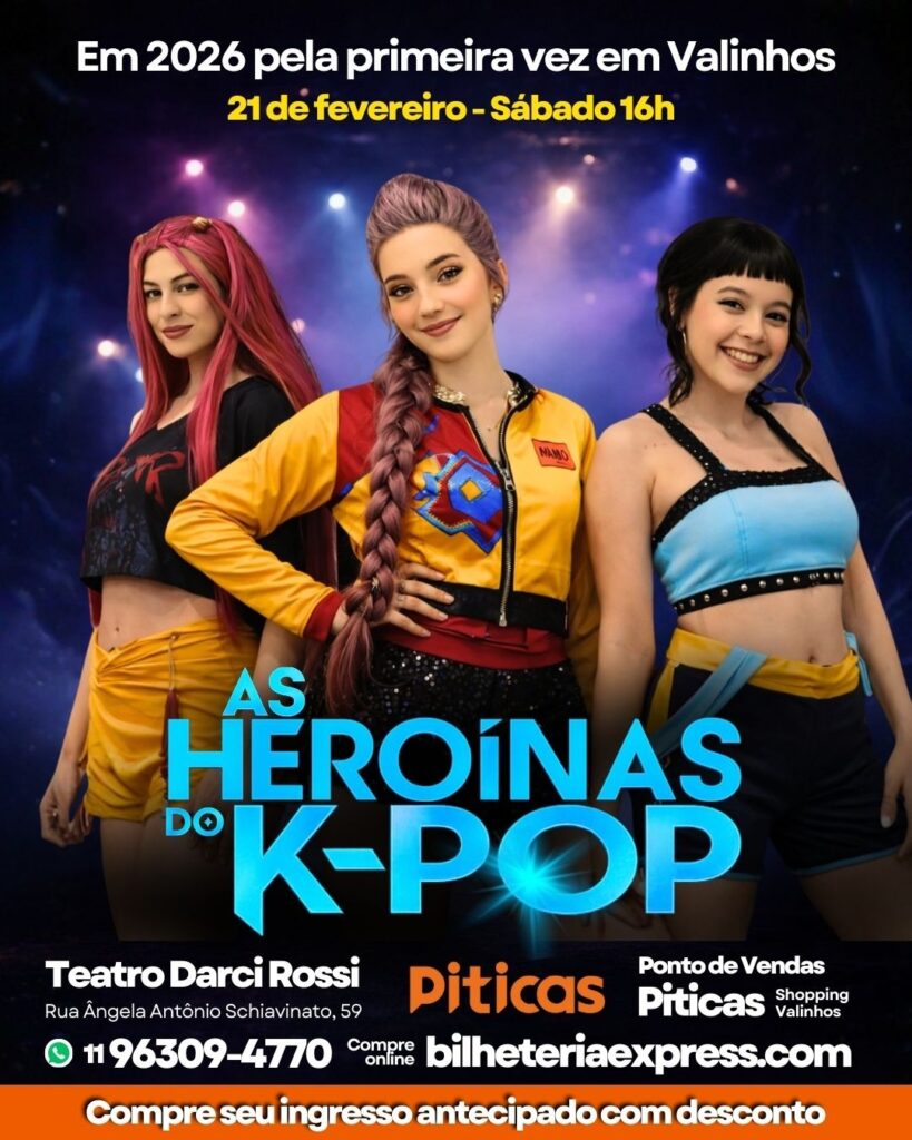 Valinhos recebe em fevereiro um espetáculo que promete unir música, fantasia e o universo do K-pop. Pela primeira vez na cidade, o musical “As Heroínas do K-POP” sobe ao palco no dia 21 de fevereiro, às 16h, no Teatro Darci Rossi.